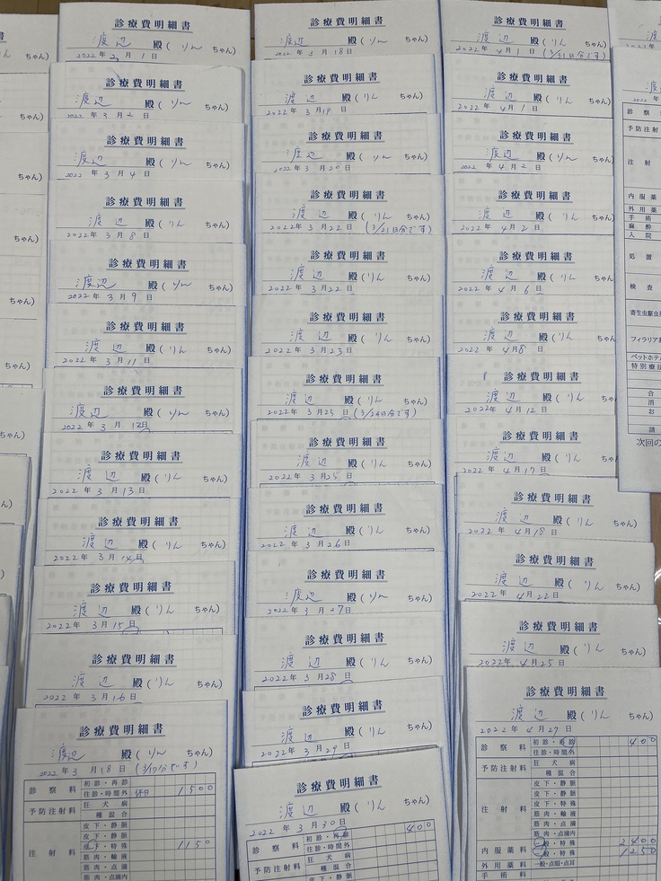 いただいた支援金は、今後の凛の治療費と食事代に充てさせていただきます。