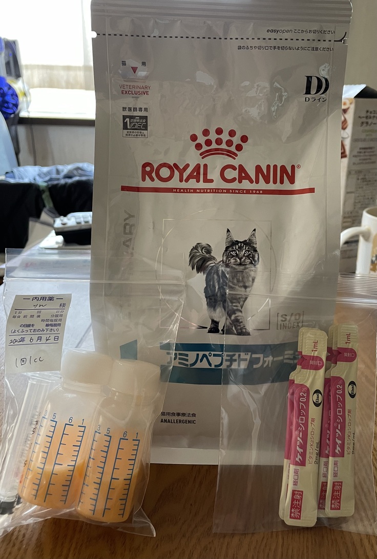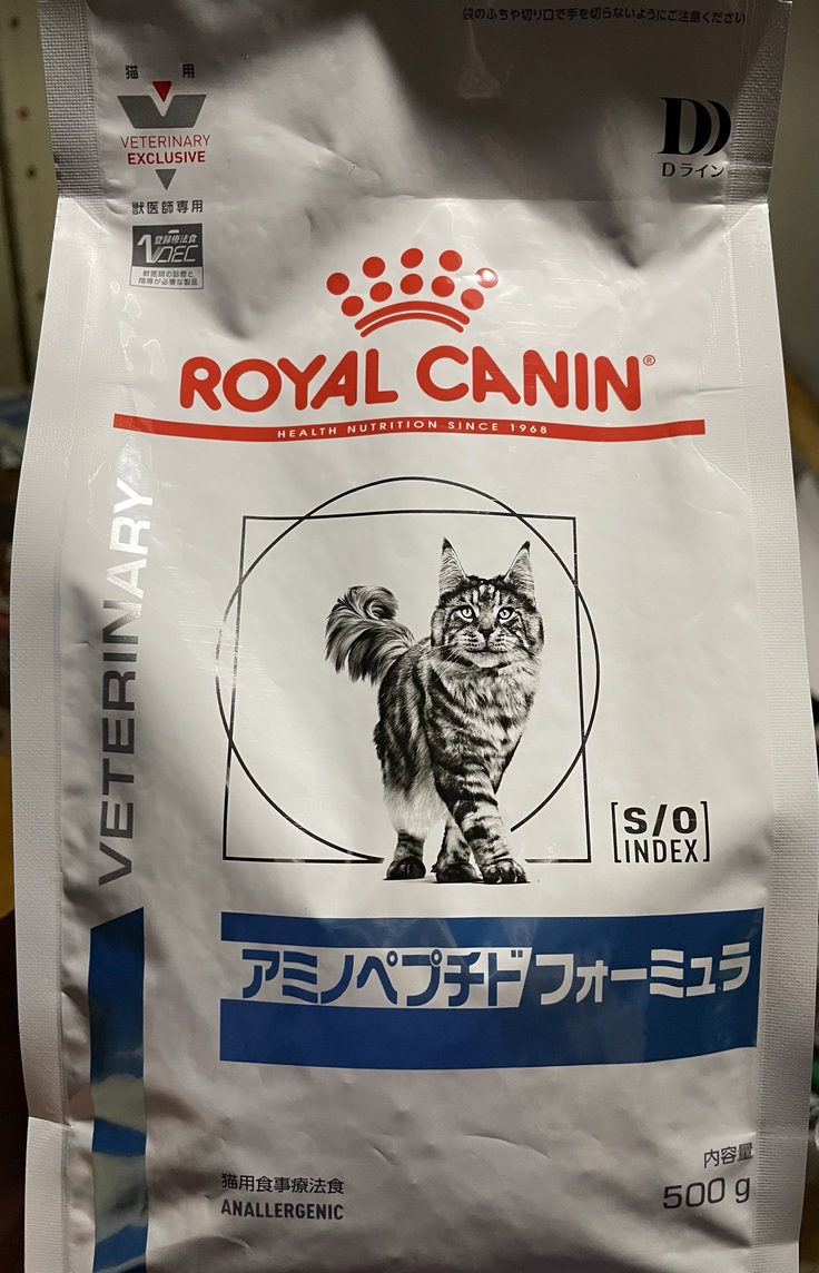 また療法食として、病院でしか購入できないロイヤルカナンのアミノペプチドフォーミュラも処方されています。