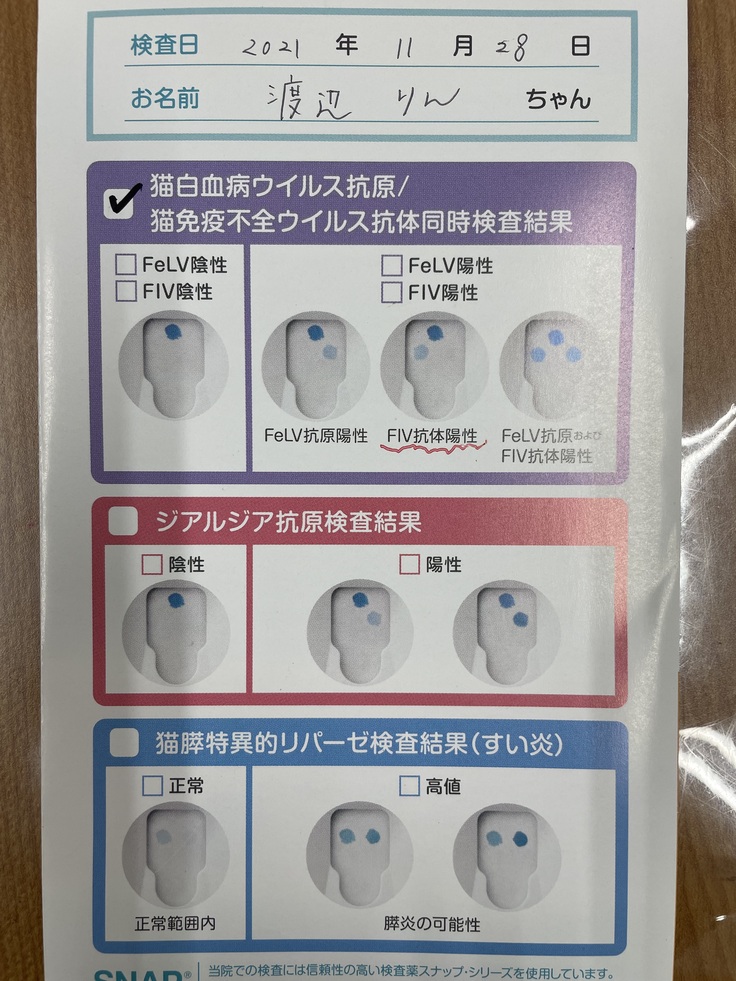 あまりの再発の早さに猫エイズを疑い、検査したところ、やはり陽性でした。