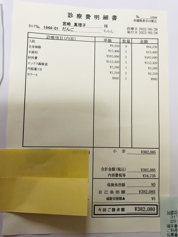 〇6月上旬に抜糸済み(順調との事)→6月下旬レントゲンによる経過確認予定