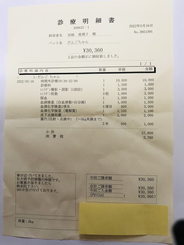 ※万が一、治療中にだんごちゃんが亡くなってしまった場合、いただいた支援金については返金はぜずこれまでの治療費に当てさせていただきます。