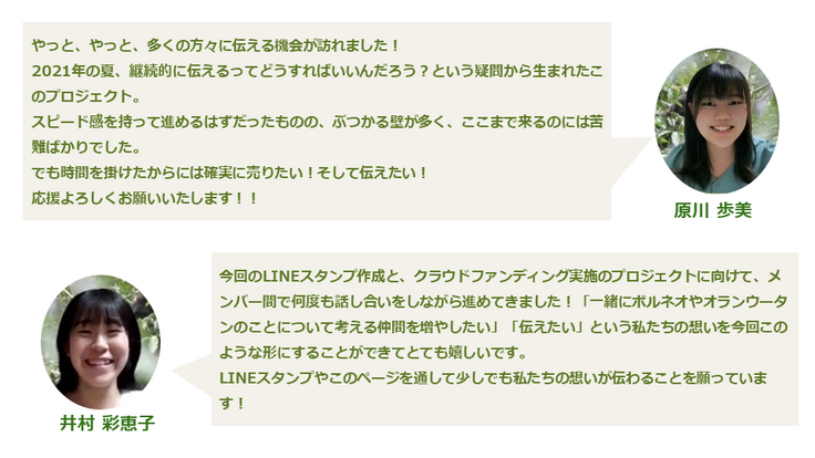 なお、ご支援いただいた金額のうちLINEスタンプ作成にかかる費用以外は全額、認定NPO法人ボルネオ保全トラスト・ジャパン(BCTJ)に寄付いたします。