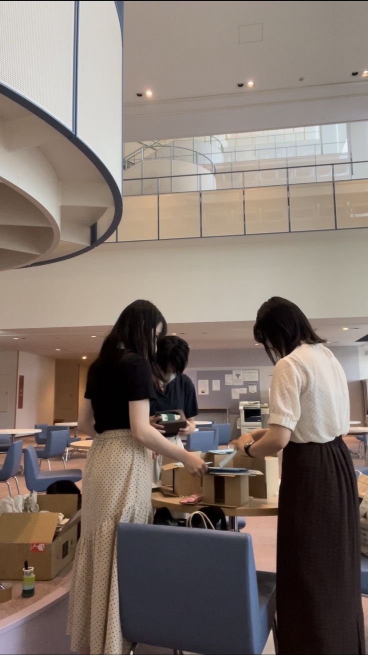 先日、メンバー7人のうち関東に住んでいる3人でリターン(オランウータンカップ、ポストカード)の発送準備を行いました!
