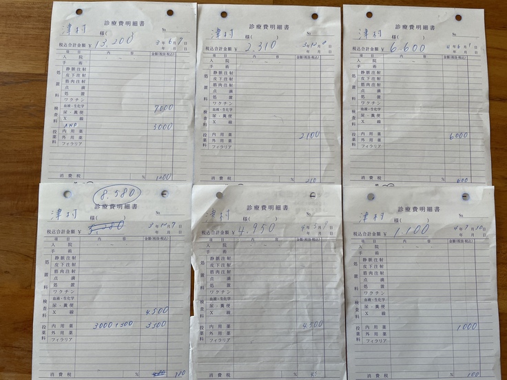 これまでの検査費用・薬代の明細書の一部