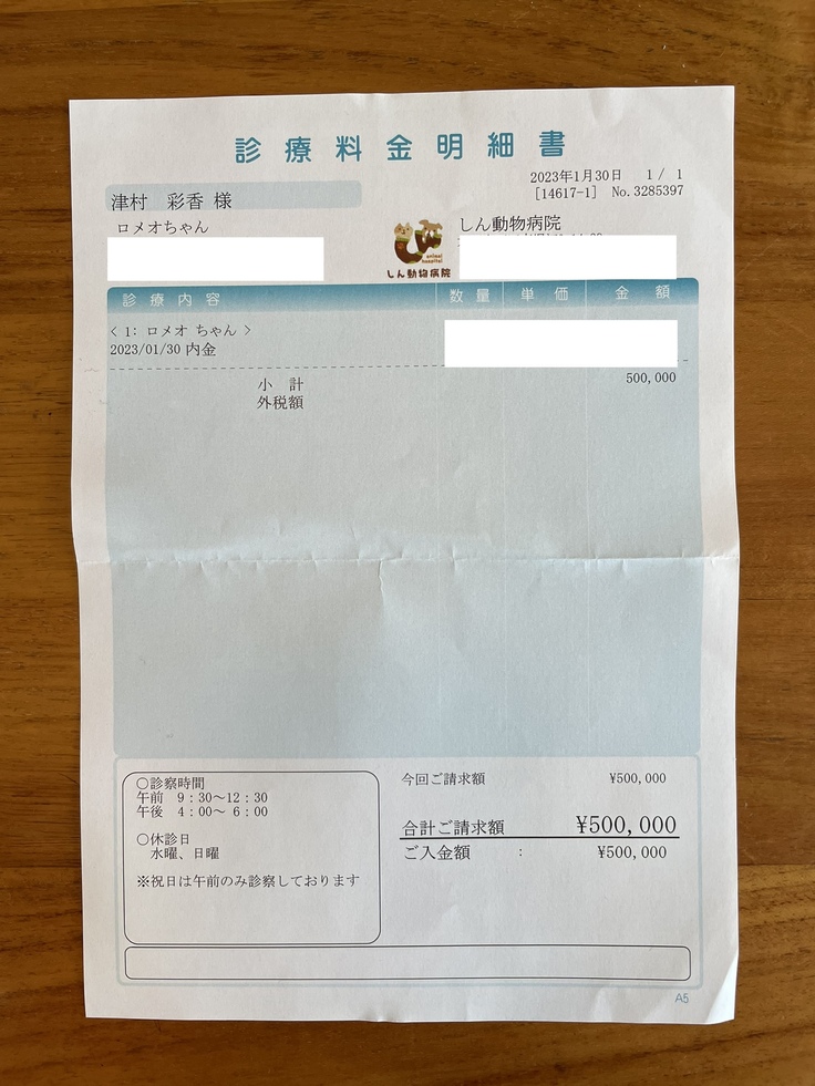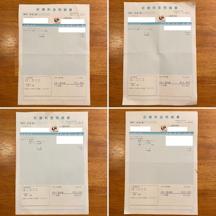▶︎ ページ上に掲載している診療明細書・見積書などの資料は全て動物病院から掲載の許諾を得ております。