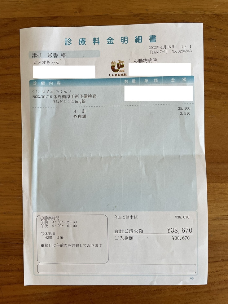 2023年1月31日、僧帽弁形成術を受けましたので、手術前検査と内金の明細書、術後の見積書を合わせてご報告させていただきます。