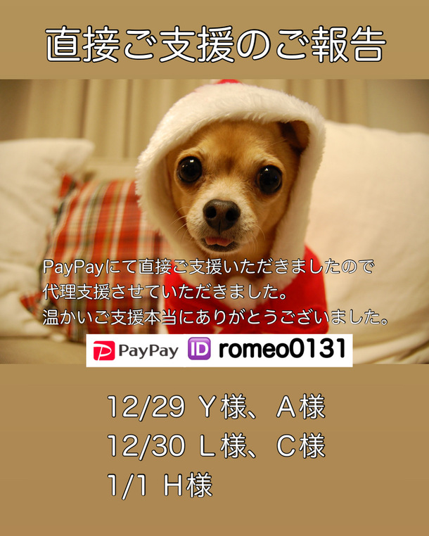 このような状況の為リターンにお金がかけられず申し訳ありません。ご支援は全てロメオの手術費と治療費に充てさせていただきます。