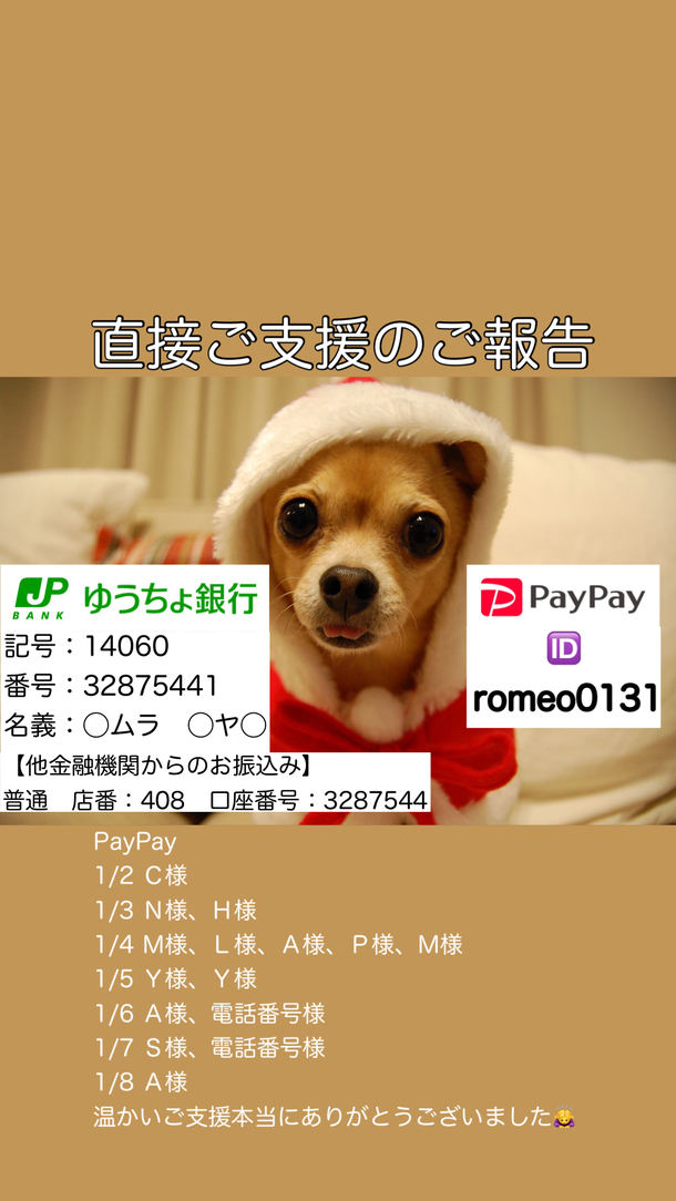 🔴直接のご支援はゆうちょ銀行またはPayPay🆔 romeo0131 までお願いいたします🔴