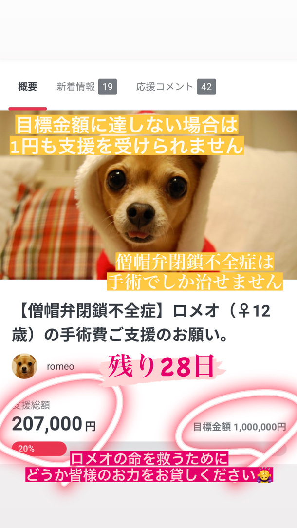ロメオの命を救うために、どうか皆様のお力をお貸しいただきたく改めてお願い申し上げます🙇♀️