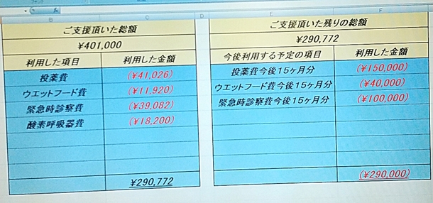 皆様の善意とはいえ…お金のことなのできちんとご報告いたしましたm(__)m