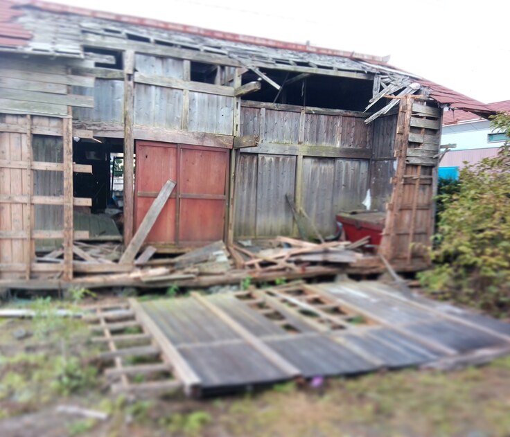 ご近所の方も、心配な様子で何度も声をかけてくださっていたのですが、スッキリした畑を見て「よぐやりやしたなぁ。」(よくやりましたね)と声をかけてくださいました。強い風が吹く度に屋根のトタンが剥がれて飛んで危険を感じていたそうです。