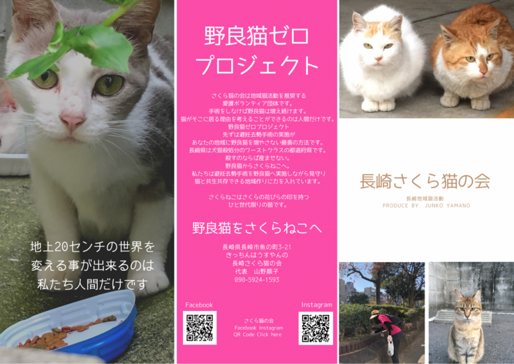 現在も変わらず野良猫の居場所を奪わないため、地域猫活動に力を入れており、今後は、長崎市魚の町に留まらず広く長崎の野良猫の不妊化や保護活動に携わり、少しでも多くの命を救っていきたいと考えております。