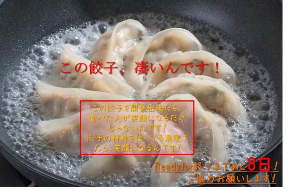 私達は、お湯を注げばすぐ食べれる餃子・ふうを開ければすぐ食べれる餃子を5年をめどに開発して全国へ届けます。そして、その先には世界へ広めます。