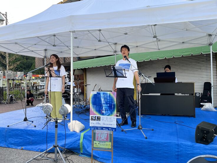 木村はる奈&近藤圭は慣れないマイクで、吉田幸央はこれまた慣れない電子ピアノでの演奏です🎶