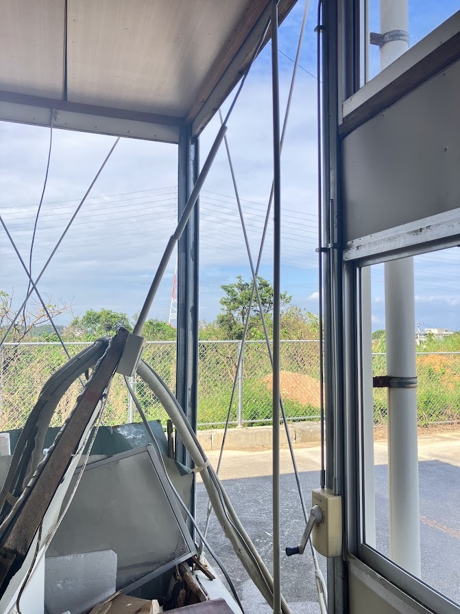 電気設備が雨ざらし状態であり、漏電や感電の2次災害防止の為、電気を緊急停止。