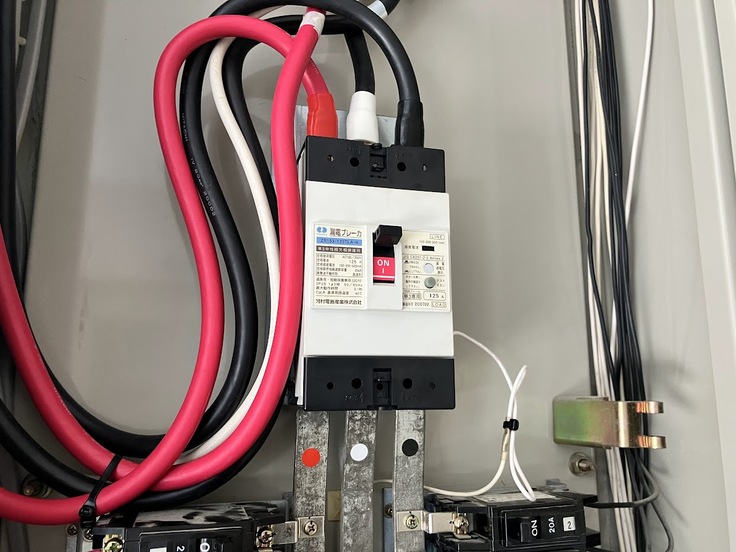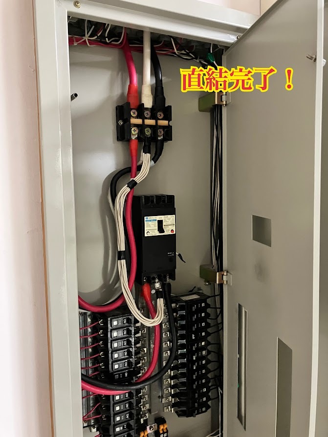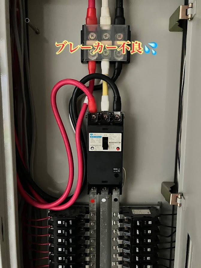 ②ブレーカー不良で停電した為、ブレーカーを応急処置として直結し送電。