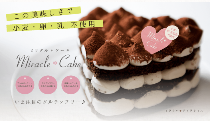 ケーキには必須の小麦・卵・乳成分をつかわずに、一般の方にも美味しく食べていただける「ミラクル*ケーキ」や 京都の手まり寿司のような愛らしいポーションケーキを多彩に揃え、「心ほっこり」をお客さまにご提供することをコンセプトに店づくりをしています。