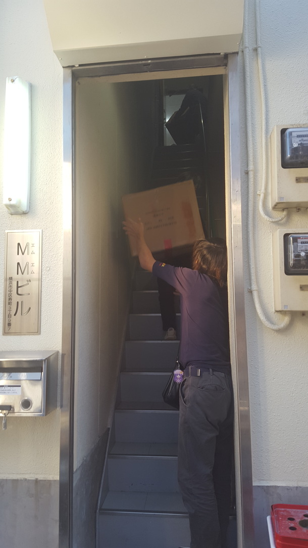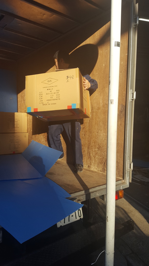 本日は受注作業の納品日、ぷれいすには足腰が悪い利用者様もいる為、寿クリーンセンターのスタッフが運びの作業を率先して手伝ってくれます。