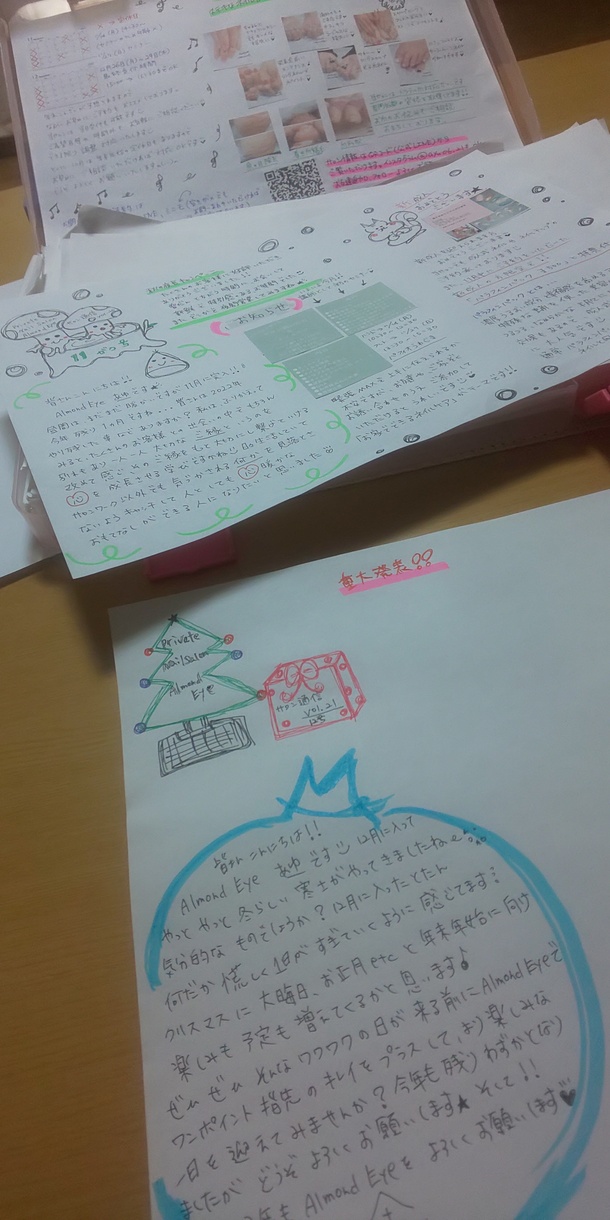 【サロン通信】といってその月にテーマをいくつか決め(例えば、乾燥と爪にまつわる原理など)ご来店なさったお客様にお帰りの際にお渡しして、ただネイルに来て施術しお見送りで終わるのではなく、ネイルが少しでも長持ちするようにだったり、硬くなった指周りの角質が気になる点を解決するようにだったり、お家に帰ってからも少しでもサポートや役立てる新聞風なものを手作りしています✎*。