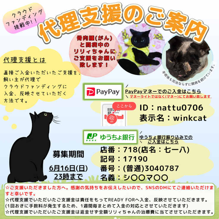 ご支援を受けたいと思っている黒猫リリィちゃんの家族、島田と申します。