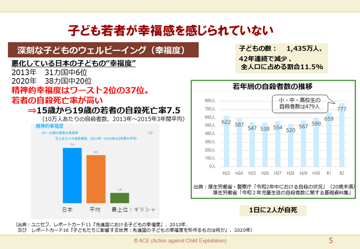 日々のニュースや様々なデータ、日常で感じることを通して、私たちには「日本の子ども若者は幸福感を得られていないのではないか」という課題感がありました。
