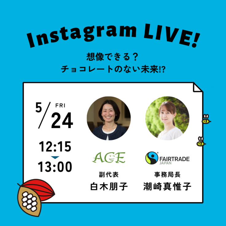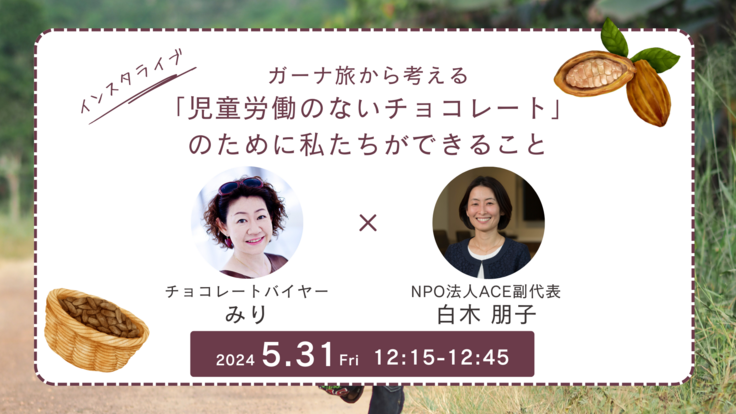 そこでフェアトレード月間のコラボイベントとして、ACEの副代表 白木とフェアトレード・ラベル・ジャパンの事務局長 潮崎さんとの 5月24日(金)ランチタイムにインスタライブトークイベントを行います!ぜひご参加ください!