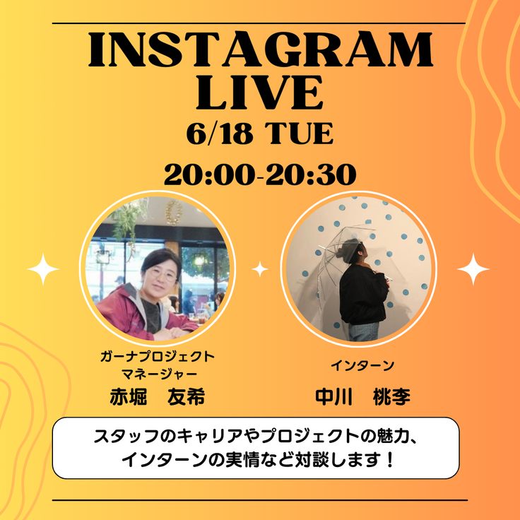 ACEのガーナプロジェクトマネージャーを担当するスタッフと、インターンシップをしている大学院生によるインスタライブを行います!