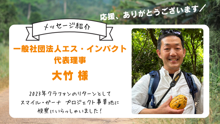 今日は一般社団法人エス・インパクト代表理事の大竹さんから応援メッセージを頂いたのでご紹介いたします。