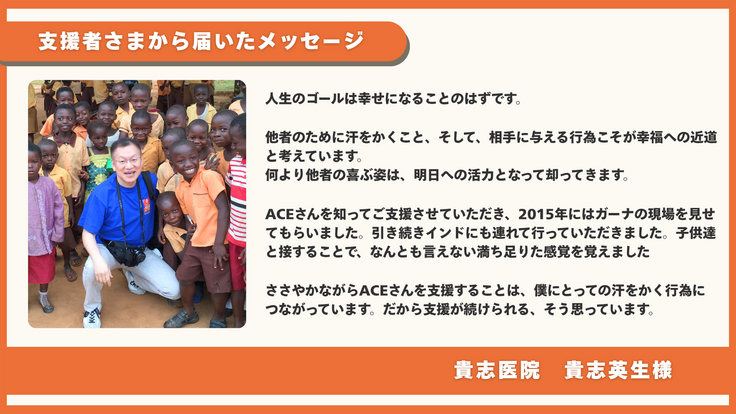 本日ご紹介するのは『貴志医院 貴志 英生様』からいただいた応援メッセージです。