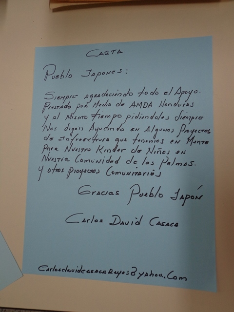 いつもAMDAホンジュラスを通じてご支援くださり、本当にありがとうございます。