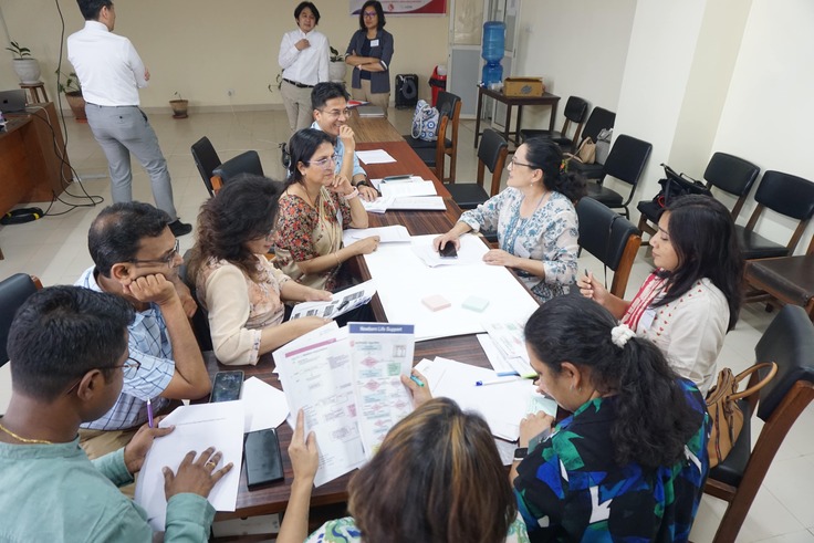 このキックオフミーティングには、今後ネパール版・新生児蘇生法のプロトコル策定に取り組むネパール小児科学会(NEPAS)の10名の委員、日本の新生児蘇生法(NCPR)の専門家の嶋岡先生と安田先生、そしてASHAの3者が一堂に会しました。