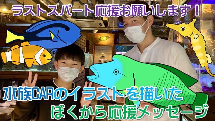今日は移動水族CARのイラストを書いてくれた諒人くんから応援メッセージを頂きました。