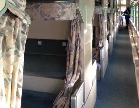 (寝台列車となる、ブルートレインの車内です。とてもきれいな状態です。)
