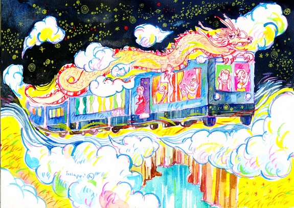 ・アーティスト長友心平さんによる 岩泉とブルートレインをテーマとしたポストカード