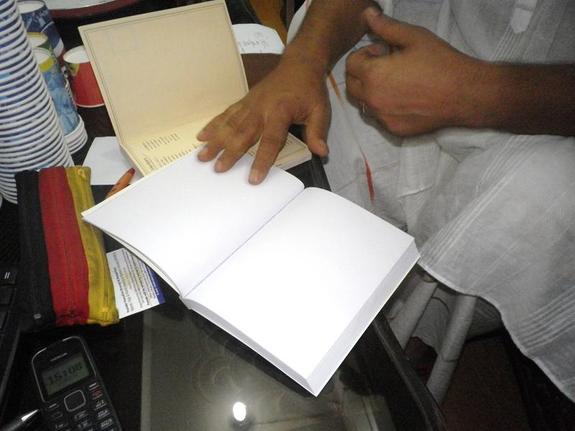 今回は工場にある紙で作ってもらい、外表紙は外国紙で、中の冊子はバングラデシュの紙でためしにサンプルを作っていただきました。