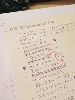 なかなか一気に100まで項目が思い浮かばず、一度機に全部書くのではなく、思いついたら随時手帳に書いていくのがいいと思ったそうです。