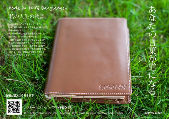 この手帳プロジェクトは私が大学4年生の時、バングラデシュで休学した時に現地で立ち上げたプロジェクトです。バングラデシュの職人さんと女子大生の2人3脚で女性の新しいライフスタイルを生み出す文房具をテーマに作りました。