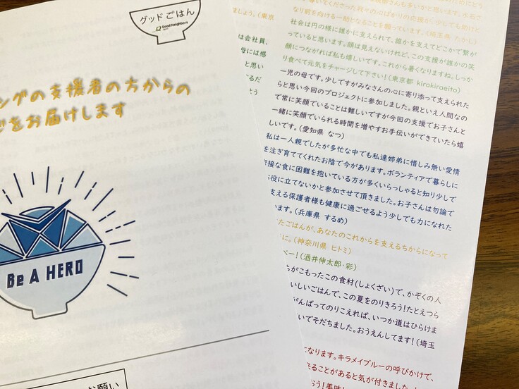 #BeAHEROプロジェクトで集まった支援者の皆様からの応援メッセージをまとめた冊子をお渡ししました。