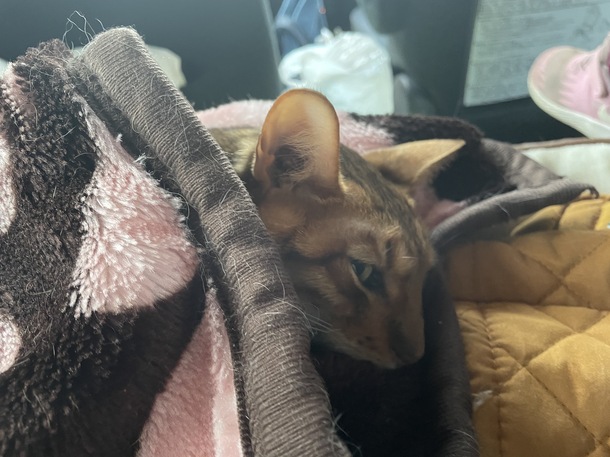ぐったりして、ずっと丸まっている状態で、昨日の夜先生に相談したところ、出来るだけ早く連れてきてと言われたので、今日連れて行きました。