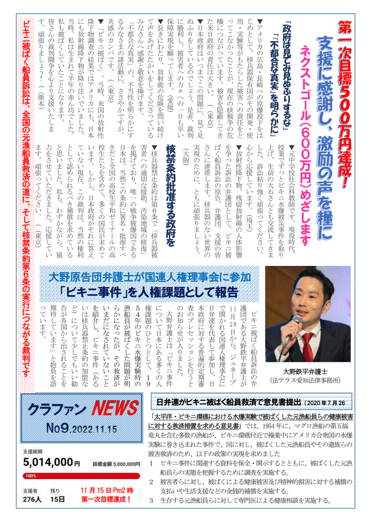 ビキニ被ばく船員訴訟支援/マンスリーサポーター募集!