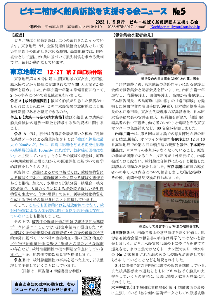 「ビキニ被ばく船員訴訟を支援する会ニュース」No5-①お届けです