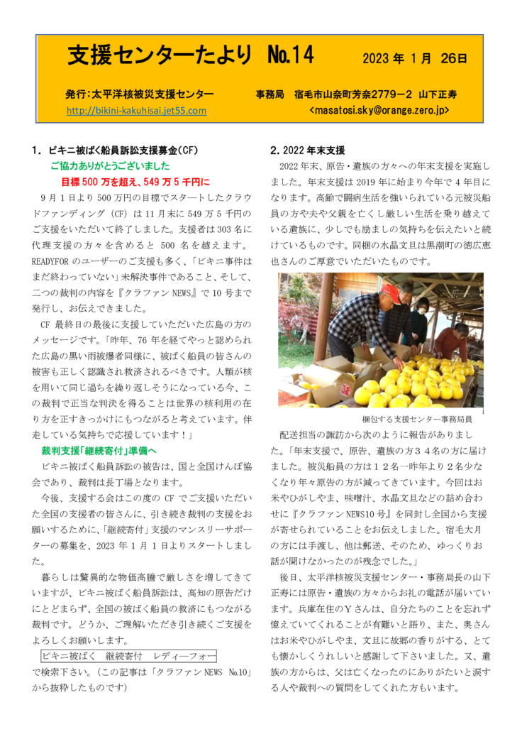 太平洋核被災支援センターが発行する「支援センターたより」No14が発行されましたのでご紹介します。