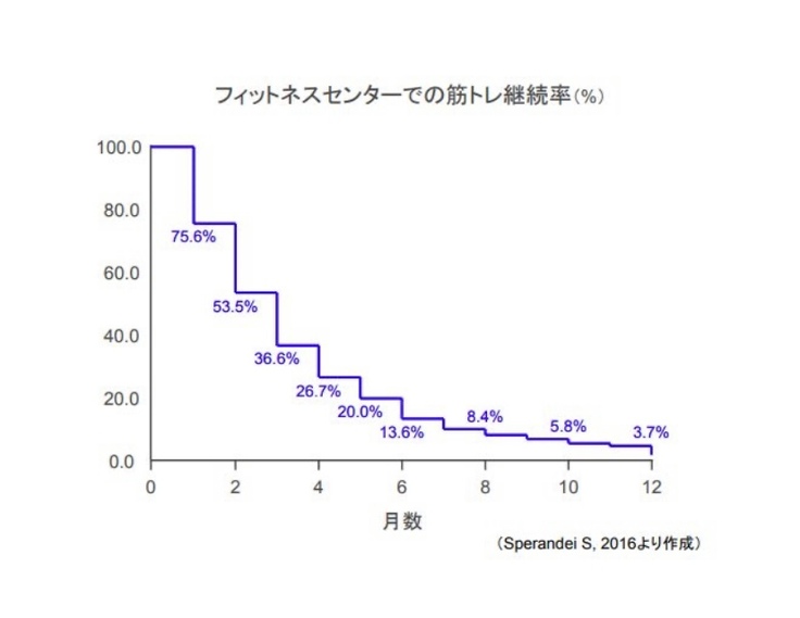 ちなみにジムでの筋トレの継続率を見ると半年で13,6%程(speramsai S, 2016より作成)だそうです!皆さん安心したのではないでしょうか