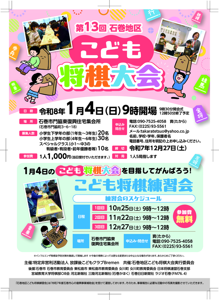 「第13回 石巻地区こども将棋大会」練習会が始まります!