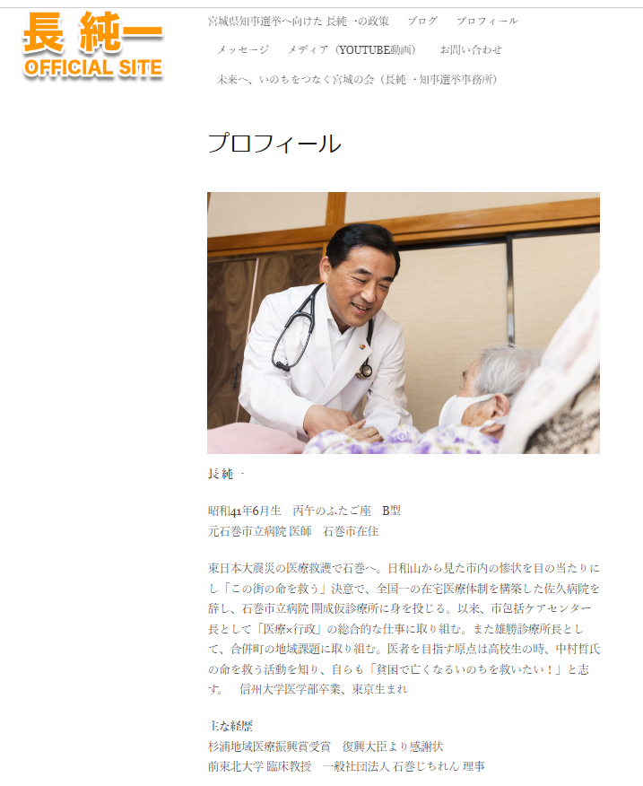 石巻の恩人の一人に長純一先生がおられます。お医者様です。被災後の石巻の惨状を目の当たりにして被災者を救うための身を投じてくださった方です。知事選にも出馬され多くの票を得ましたのでご存じの方も多いかと思います