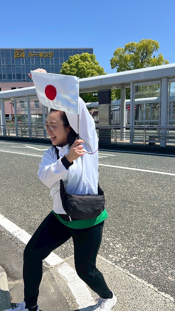 旅のお供に必要な誘導旗はママさんの手作り。