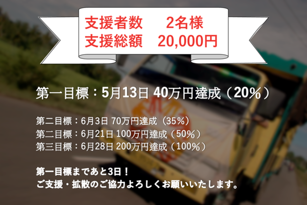 プロジェクトを無事に成功させるためにも、第1ゴールである20%の達成へのご支援・ご協力よろしくお願いいたします!