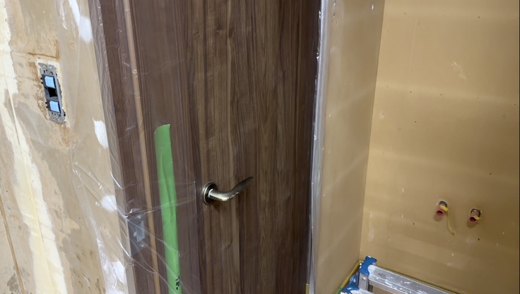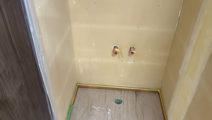 古いトイレ&洗面所が外れ、こちらは今週末に仕上り予定となっております!