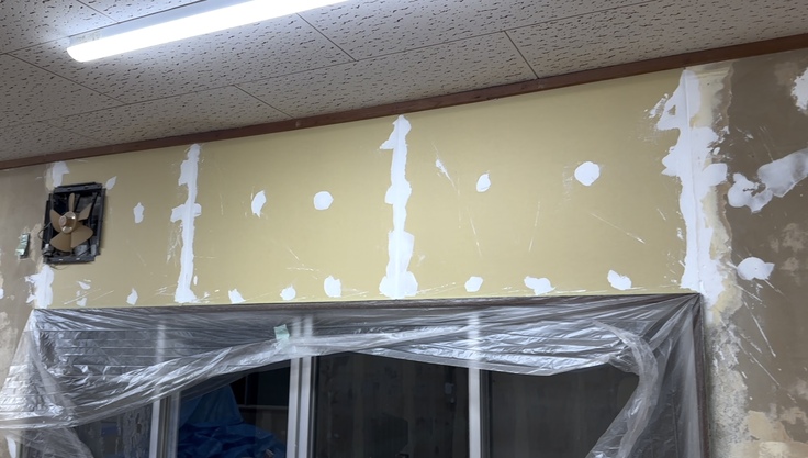 当初の予定では今月いっぱいでしたが、雨漏れ等の新たな修繕箇所や資材の納期の関係、自分達で仕上げていく部分の作業の遅れで5月18日くらいまでかかりそうです。