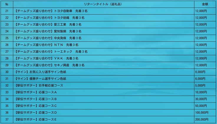 ・中部・北陸実業団選手の強化費用(合同合宿の実施) ・田原市の物産やグルメ、観光スポットの魅力発信 ・スタート地点で大会盛り上げイベントの開催 ・各地点での出店